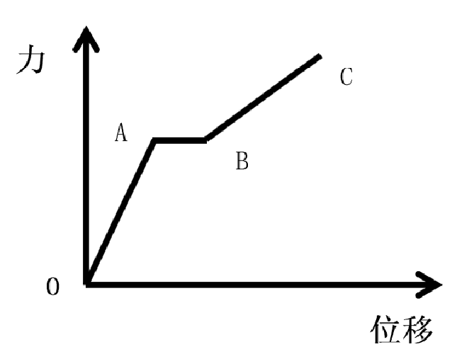從薄膜拉伸試驗(yàn)的大量實(shí)驗(yàn)結(jié)果中,我們可以總結(jié)得出以下結(jié)論,在拉伸試驗(yàn)初期,薄膜表現(xiàn)出一定程度的彈性,在下圖中,O-A段稱為瞬時(shí)彈性變形,在該階段,拉力的大小與被測材料拉伸程度之間的關(guān)系表現(xiàn)為正相關(guān)的增大,這一時(shí)間段拉伸停止后材料可以基本還原為原來的形態(tài)。隨著拉伸位移的不斷增加,圖中A-B段拉力變化在一個(gè)較小的范圍內(nèi)波動,這一現(xiàn)象表示被檢測材料已經(jīng)開始宏觀頸縮變形,這一階段材料將會失去原來的功能。隨著拉伸位移逐漸增大,薄膜試樣開始出現(xiàn)微型孔洞并且進(jìn)一步變現(xiàn)為應(yīng)力集中,該階段拉伸位移和拉力又呈現(xiàn)出線性關(guān)系,在圖中表現(xiàn)為B-C段,薄膜發(fā)生大變形直到宏觀拉斷。